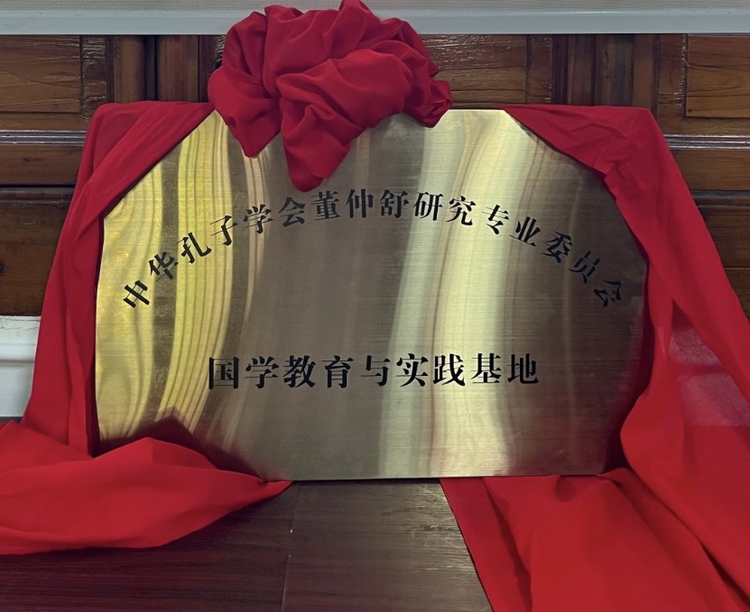 成立“中华孔子学会董仲舒研究专业委员会国学教育与实践基地”,何善蒙院长向朱美萍、冯菡副秘书长授牌。