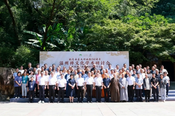 2025年6月7日,我院参与主办的“之江同心正信正行·纪念永嘉大师诞辰1360周年——温州禅文化学术研讨会暨温州南怀瑾禅学研究会年会”在妙果寺宿觉讲堂举行。台州学院人文社科处副处长、台州学院和合文化研究院儒释道研究所所长屈燕飞应邀出席,天台宗研究中心苏畅,和合文化研究院专职研究员敖英、则慧、郝金广、徐克等博士参加会议。