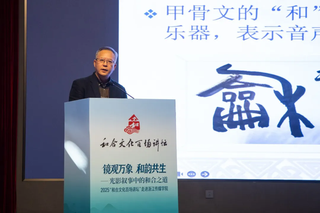 11月25日下午,“和合文化百场讲坛”第51场在浙江传媒学院钱塘校区举行。本场讲坛以“镜观万象,和韵共生——光影叙事中的和合之道”为主题,300余名师生齐聚一堂,共同聆听和合故事、探索和合之道。活动设置领导致辞、专家主旨分享、专家论道、歌曲演绎等环节。浙江传媒学院校长、党委副书记韦路,台州市委宣传部副部长李羚受邀出席,台州学院人文学院院长、台州市和合文化研究院副院长罗争鸣,浙江传媒学院教授、纪录片导演潘志琪等专家受邀参加并作主旨分享。