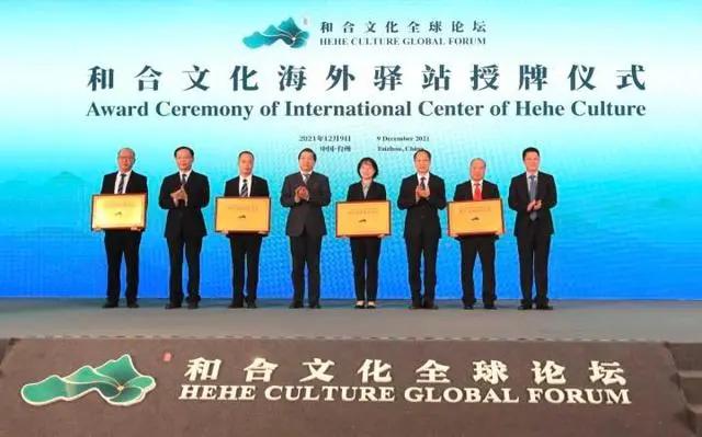 现场对天台进行了“中华文化国际传播合作基地”授牌,为日本、澳大利亚、苏丹等地进行“和合文化海外驿站”授牌,并以视频形式发布了《中国关键词》多文种系列图书和“天台山和合文化”研究丛书。