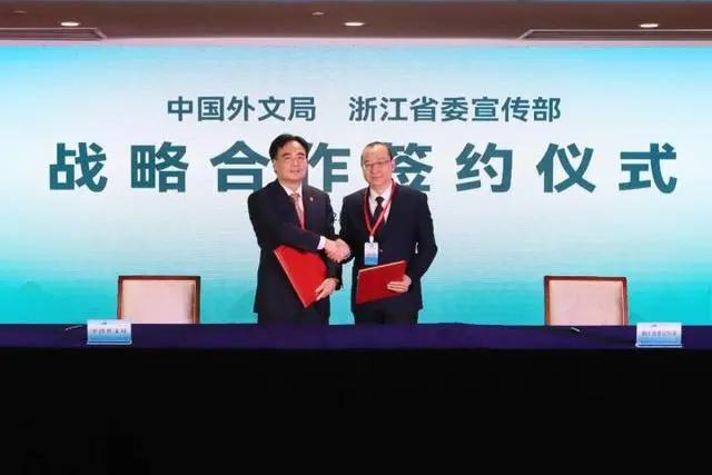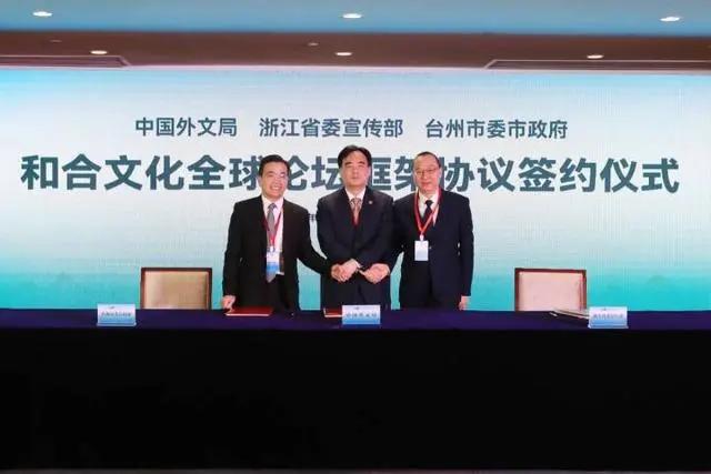中国外文局和浙江省委宣传部、台州市委市政府签署和合文化全球论坛框架协议。