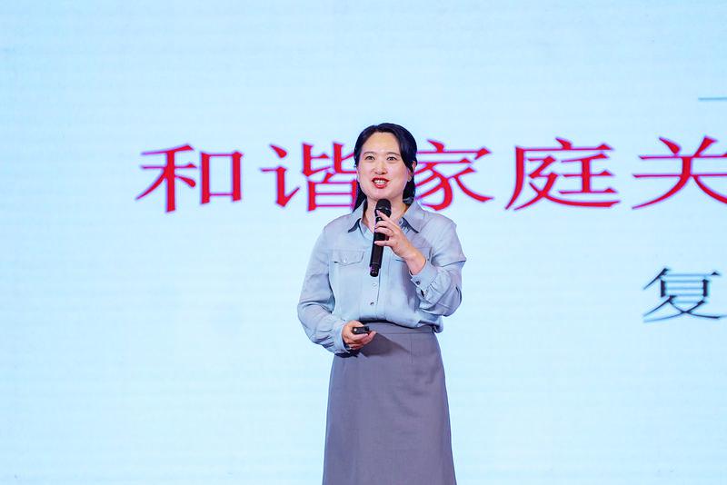 中国家庭文化研究会副秘书长、中国社会学会家庭社会学专委会副会长沈奕斐将“和合文化”应用于家庭教育实践,带来题为《和谐家庭关系是亲子教育的基础》的演讲。